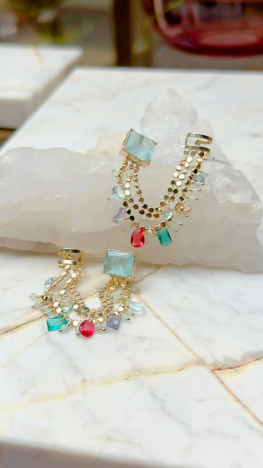 FRINGE LIGHT TOURMALINE EAR CUFF EARRING
