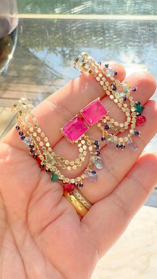 FRINGE PINK TOURMALINE EAR CUFF EARRING