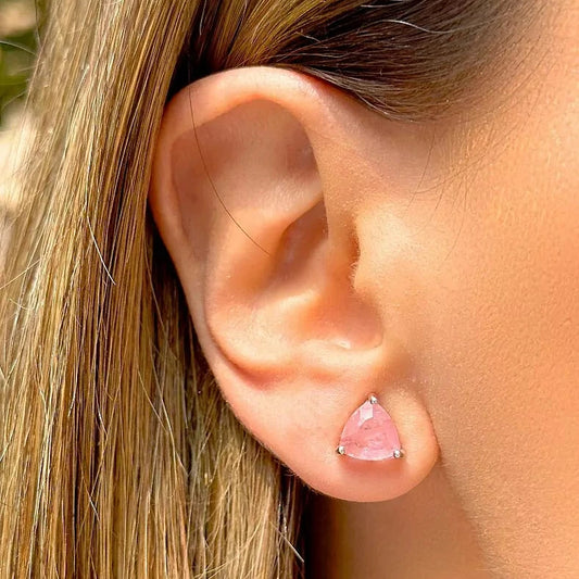 ROSE QUARTZ TRIANGLE EARRING