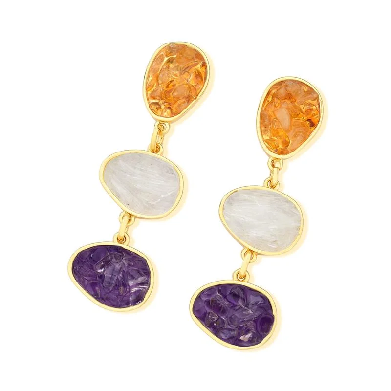Connect with the energy of the earth through the Three Natural Stone Earring from Olivia Concept. This unique piece is available in two powerful variations — each featuring natural stones selected not only for their beauty but for their meaningful properties.